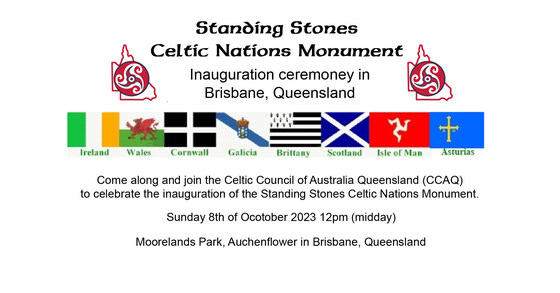 Come along and join the Society along with the Celtic Council of Australia Queensland, to celebrate the inauguration of the Standing Stones Celtic Nations Monument CELTIC COUNCIL OF AUSTRALIA (Qld) Inc. cordially invites you to attend this historic event to celebrate installation of the Standing Stones Celtic Nations Monument in Moorlands Park, 503 Coronation Drive, Auchenflower, Brisbane. CCAQ is very proud of this wonderful Celtic Nations Monument, honoured to be able to present this to the city of Brisbane, and wishes to thank and acknowledge all those who have supported and helped to realise a dream. The Society donated to this cause in 2019 and is very happy to see this project realised. Free admission!